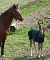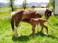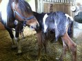 Wir haben tolle Neuigkeiten: Nach anfänglicher massiver Aggression der Tinkerstute hat sich ihr Verhalten nach Anwendung des Fohlenfell-Tricks sofort gebessert und am Abend des 1.Tages hat sie unser Fohlen bereits wie ihr eigenes angenommen. Sie verteidigt es vehement gegen die anderen Pferde, ist aber ansonsten sehr lieb, ruhig und fürsorglich. Es ist für uns unfassbar so viel Glück im Unglück zu haben. Durch SOS Fohlen hat unser Fohlen die Chance, trotz Verlust seiner Mutter pferdegerecht aufzuwachsen. Anbei 2 Photos.